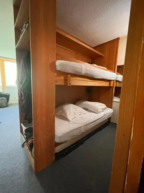 Het appartement was in een fantastische positie, direct op de hellingen en in een gebouw met winkels, restaurants en supermarkt erin.