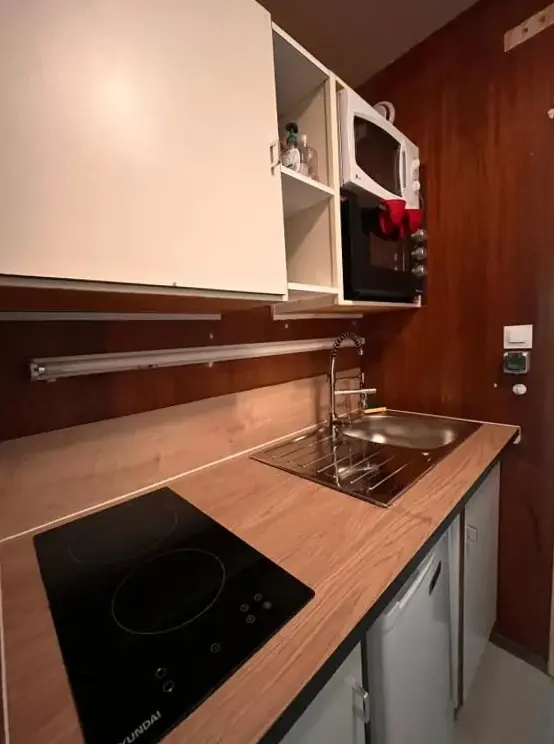 De opstelling van het appartement met de zeer kleine keuken bij de ingang, zonder vaatwasser en met slechts twee middelgrote bekers was niet erg comfortabel.